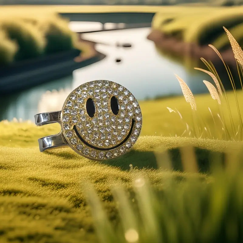 Product Overview: Golf is a mental game, so keep your vibes positive with the "Happy Face" Golf Ball Marker. Available in a Classic Enamel Yellow or a sparkling Rhinestone edition, this marker is a constant reminder to enjoy the round, regardless of your score. Paired with a premium magnetic hat clip, it sits securely on your visor for easy access. Whether you want a retro look or a bit of "bling" on the greens, this accessory ensures you never lose your spot—or your smile.